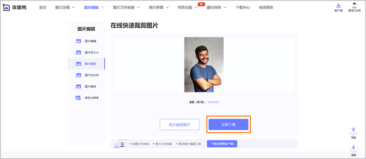 步骤三:裁剪完成后,点击【立即下载】保存至电脑中。