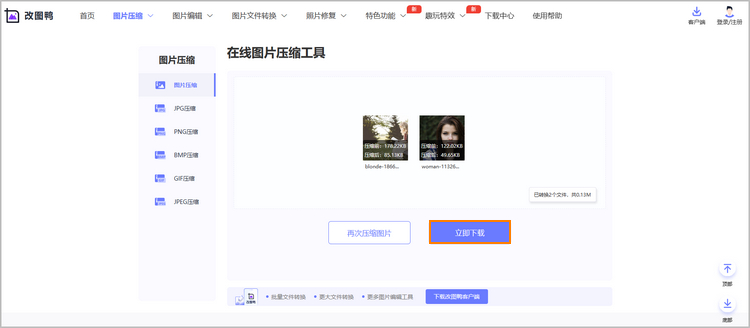 步骤3:图片压缩好后,大家查看下对应的压缩效果,合适的话,将其下载到电脑本地。