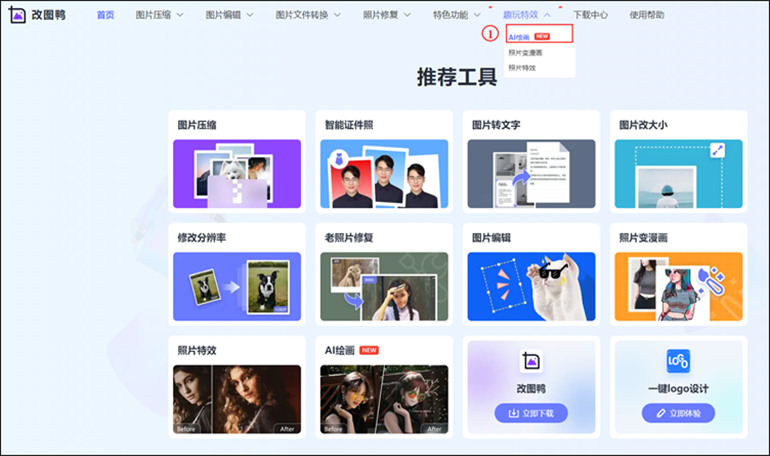 改图鸭网站除了AI绘画功能外,我们还可以使用该软件来完成图片压缩、图片编辑和照片修复等操作,无论是初学者还是专业绘画艺术家,都可以通过这些工具实现更快、更高质量的创作。