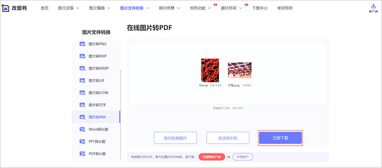 3.点击【立即转换】,网站就会自动开始进行转换。转换完成后,点击【立即下载】可以手动保存转换后的文件。