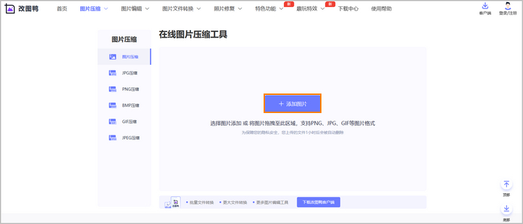 相信大家在工作或生活中接触的图片不在少数,有时也会遇到体积较大的图片,但是当我们对图片压缩后,有的图片画面可能会变糊,也就是我们所说的图片像素改变的太多了。那么我们究竟如何高保真在线压缩处理图片呢?今天小编给大家分享一个简单的图片压缩(https://www.gaituya.com/yasuo/)方法,使用改图鸭工具就可以了,并且该工具支持压缩的图片格式较多,例如png、jpg、bmp、gif等格式。